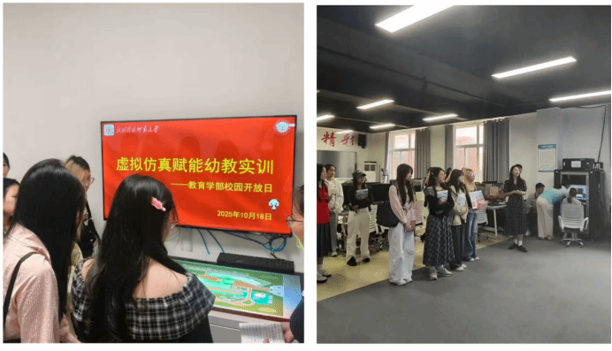 活动还安排了实验室参观环节,来访者实地探访了虚拟仿真幼教实训智慧课堂、VR创研室等特色教学空间。通过亲自操作智能教学设备、体验沉浸式教学场景,考生们直观感受到学部良好的科研条件和创新的教学理念。这种寓教于乐的体验方式,不仅展现了学部的硬件实力,更让考生对未来的学习研究充满向往。