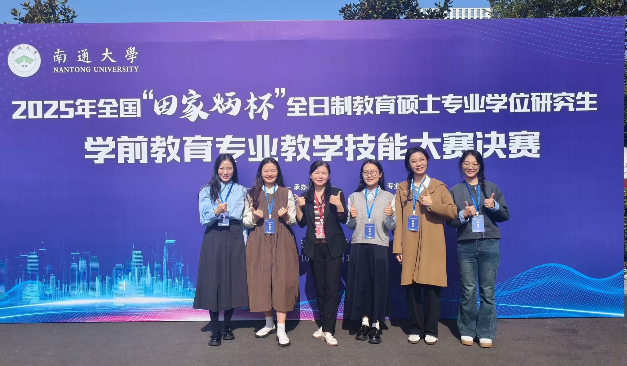 10月31日-11月2日,在由田家炳基金会冠名、南通大学承办的2025年全国“田家炳杯”全日制教育硕士专业学位研究生学前教育专业教学技能大赛决赛中,教育学部24级学前教育专业硕士研究生徐霞、余优美获得二等奖,吴彤彤、王芊钰获得三等奖,李秀娟获得优秀教学设计奖,学前教育系张莉琴、黄漫远两位老师荣获优秀指导教师奖。