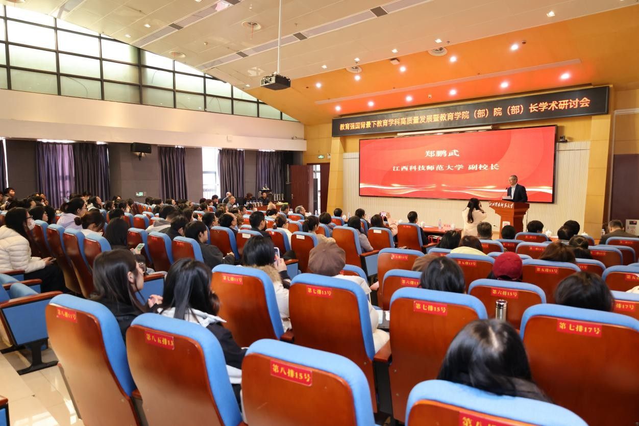 12月28日,“教育强国背景下教育学科高质量发展暨教育学院(部)院(部)长学术研讨会”在我校红角洲校区图书馆学术报告厅召开。副校长郑鹏武致辞。副校长裘指挥主持。