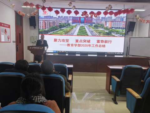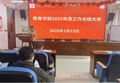 2026年1月23日上午,教育学部在红角洲校区W1319会议室召开2025年度总结大会,学部全体教职工参会。会议通过干部述职、先进表彰、荣休仪式等环节,全面总结年度工作成果,科学谋划发展新篇。